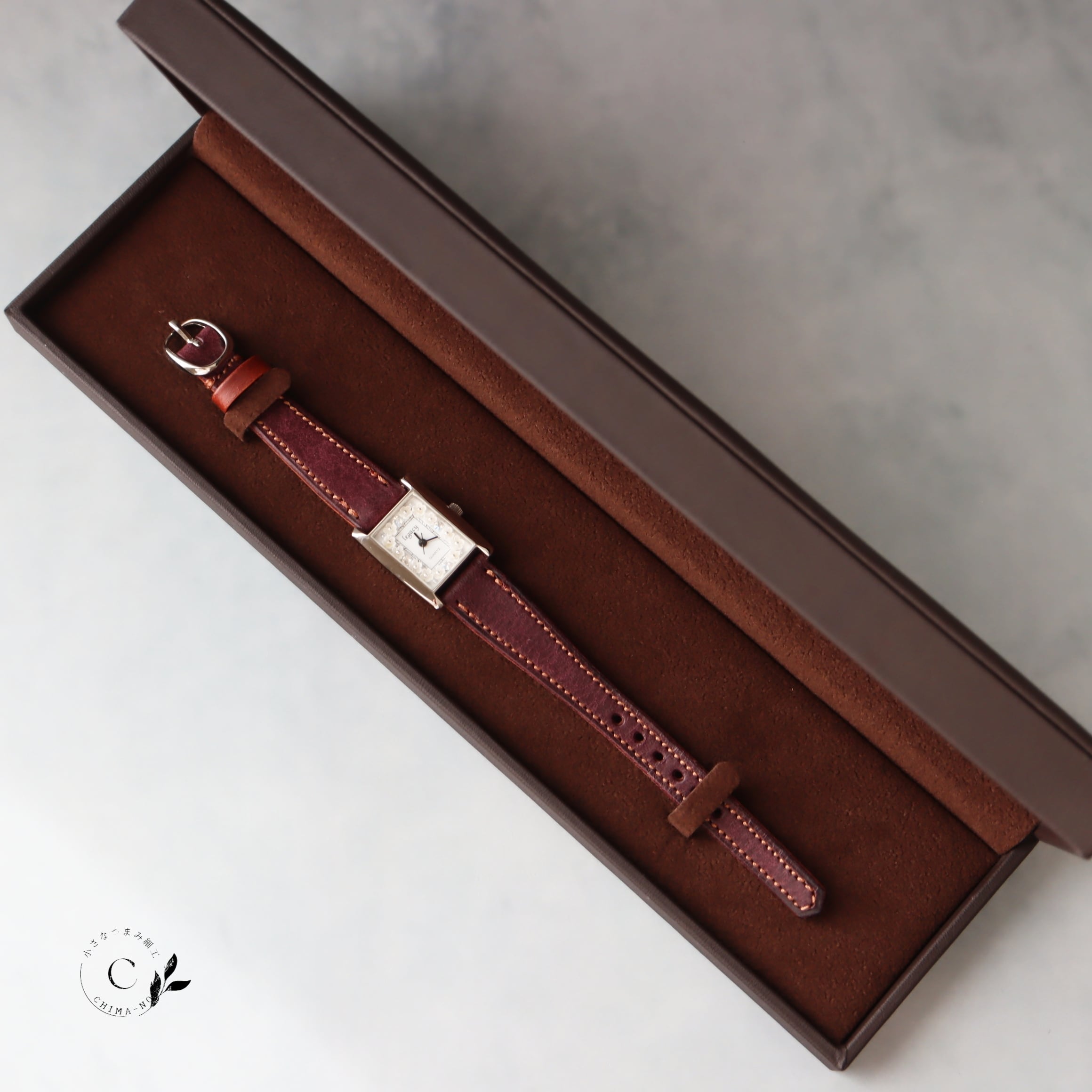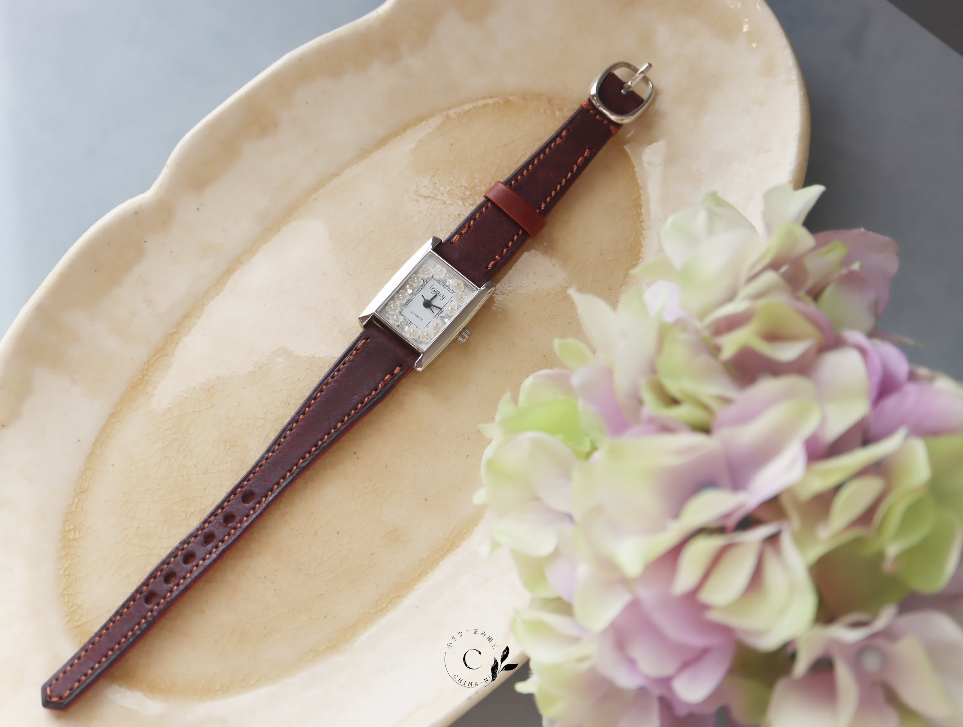 革ベルトの上質感を存分に味わっていただけるよう、小花は白に統一しています。