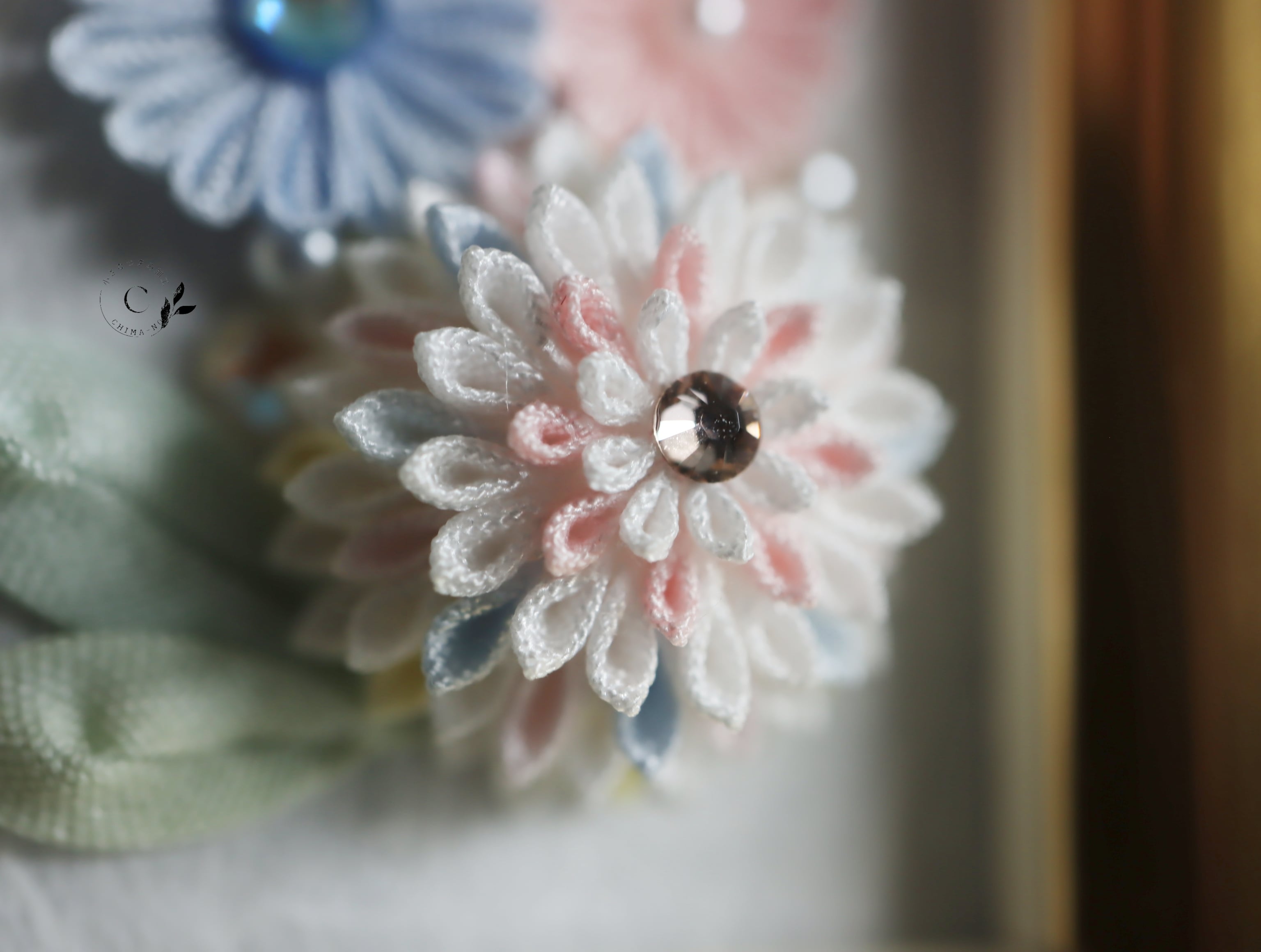 つまみ細工をインテリアとして楽しんでいただけるよう制作しました。