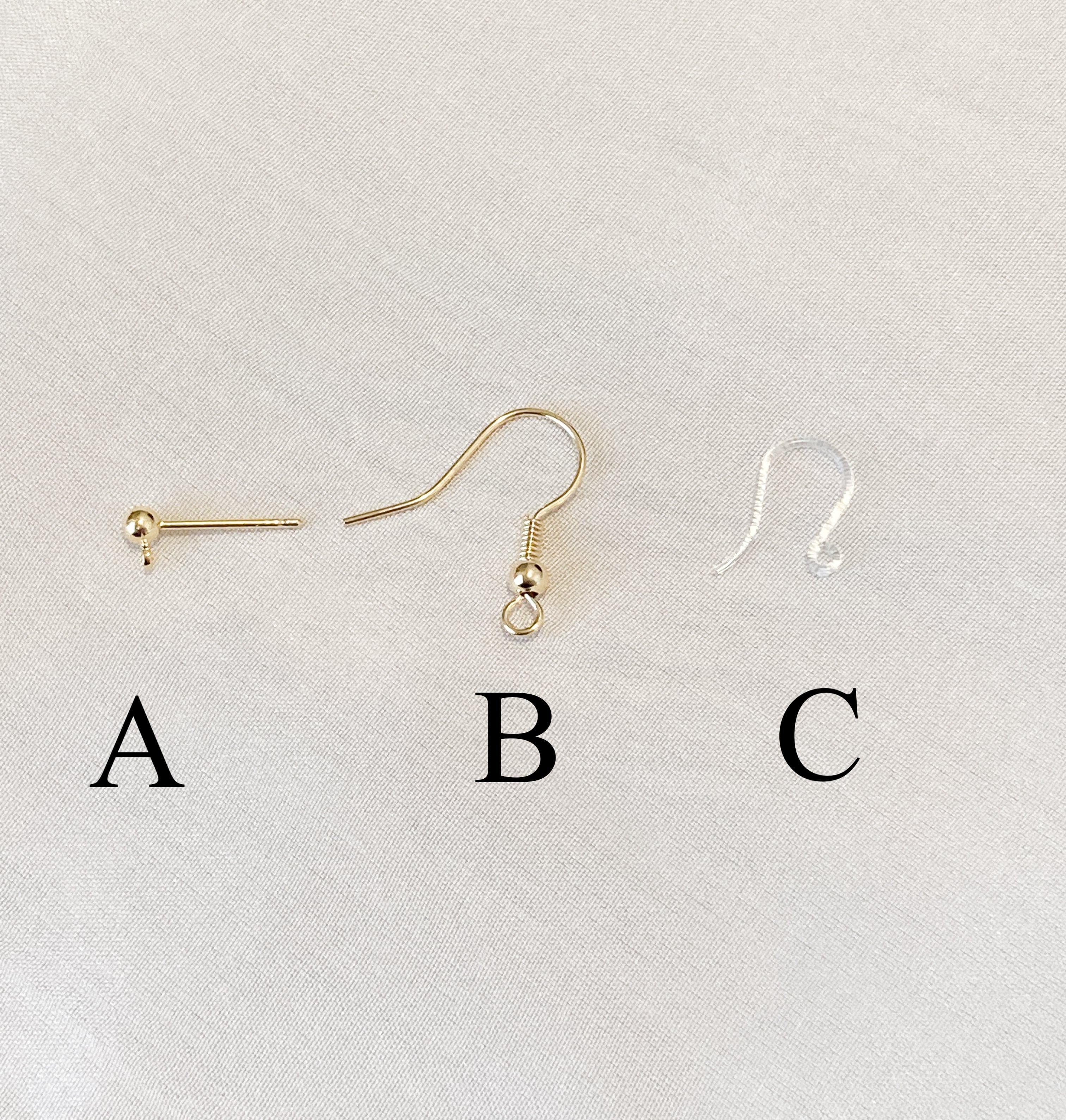 ご連絡がない場合には①のネジバネイヤリング金具にてご用意させていただきます。