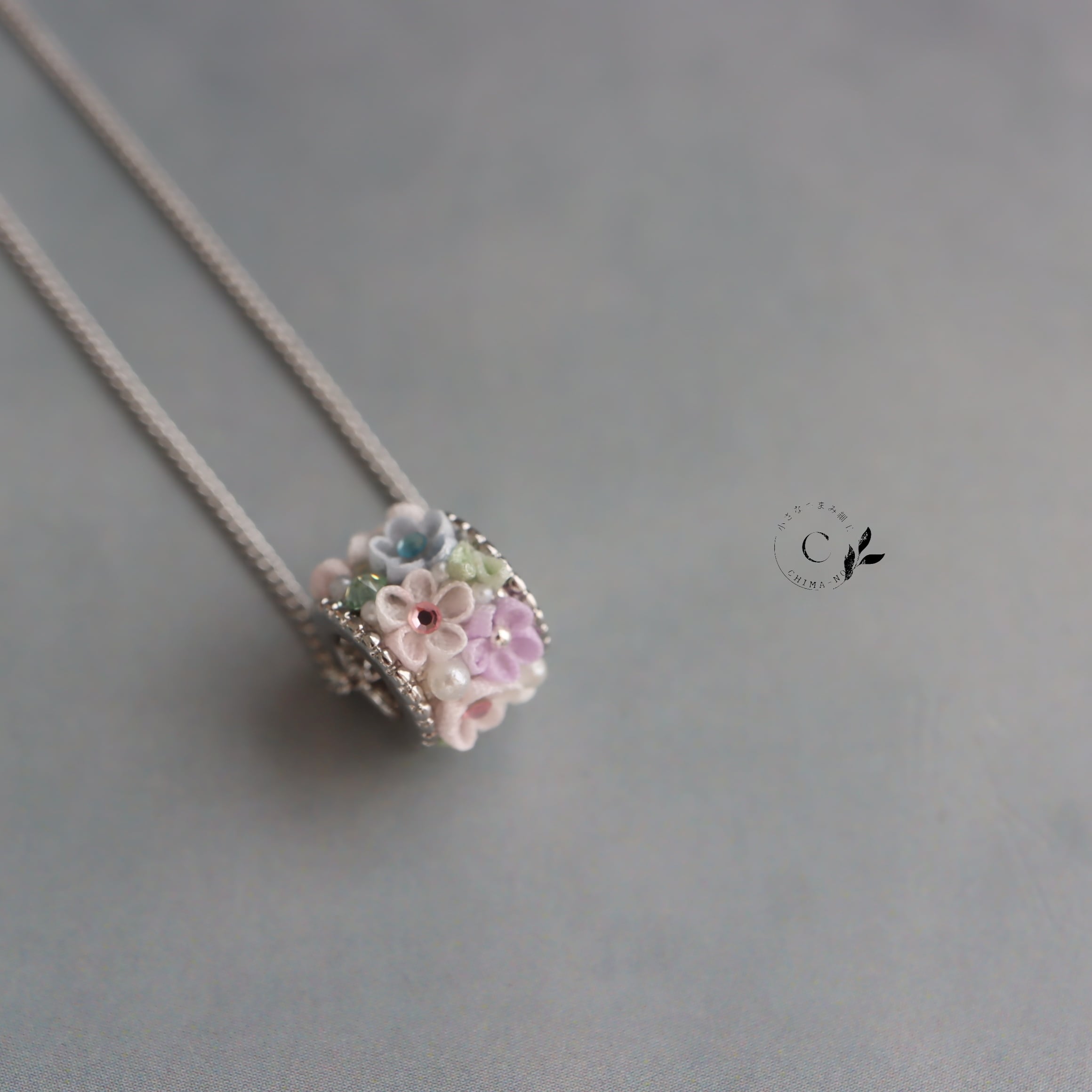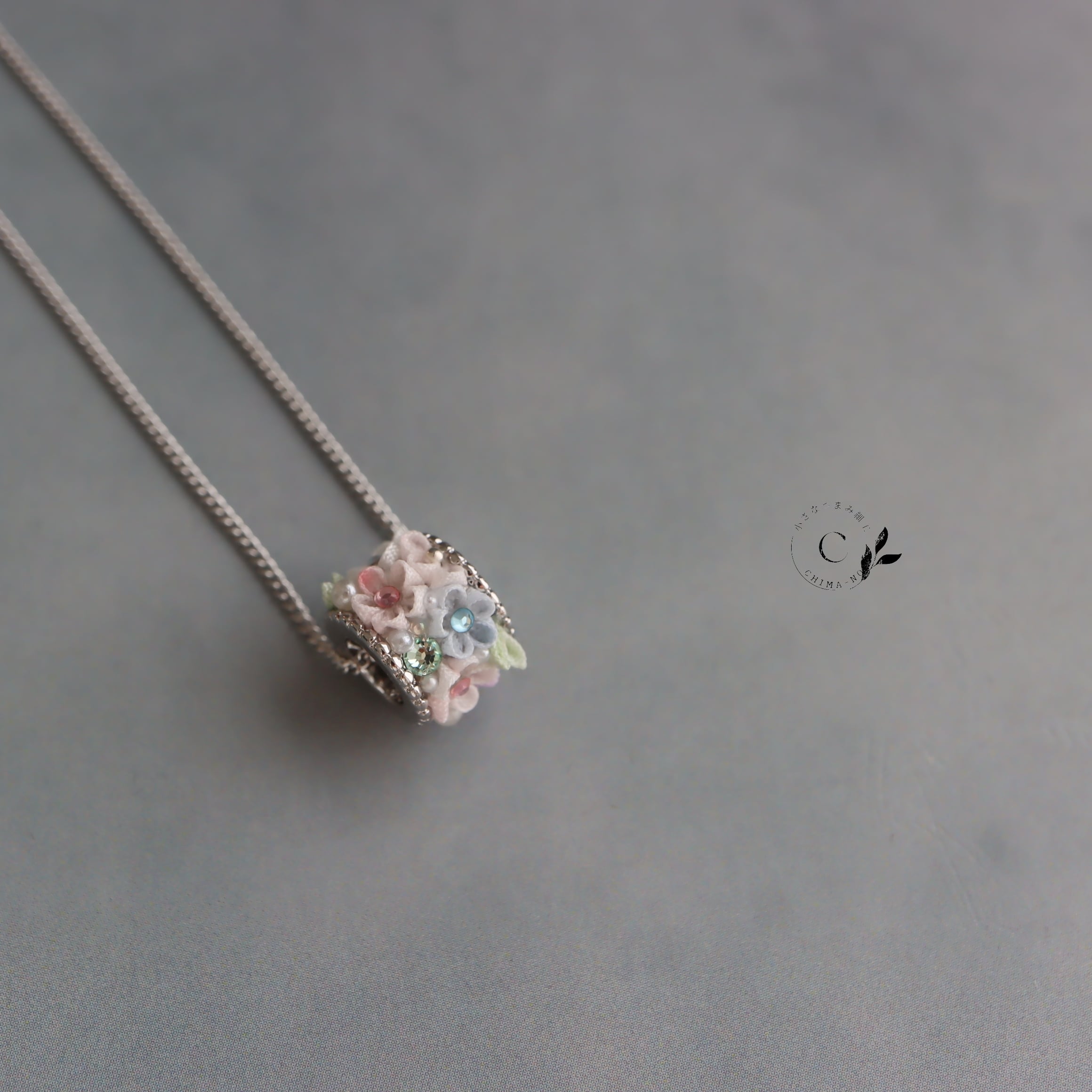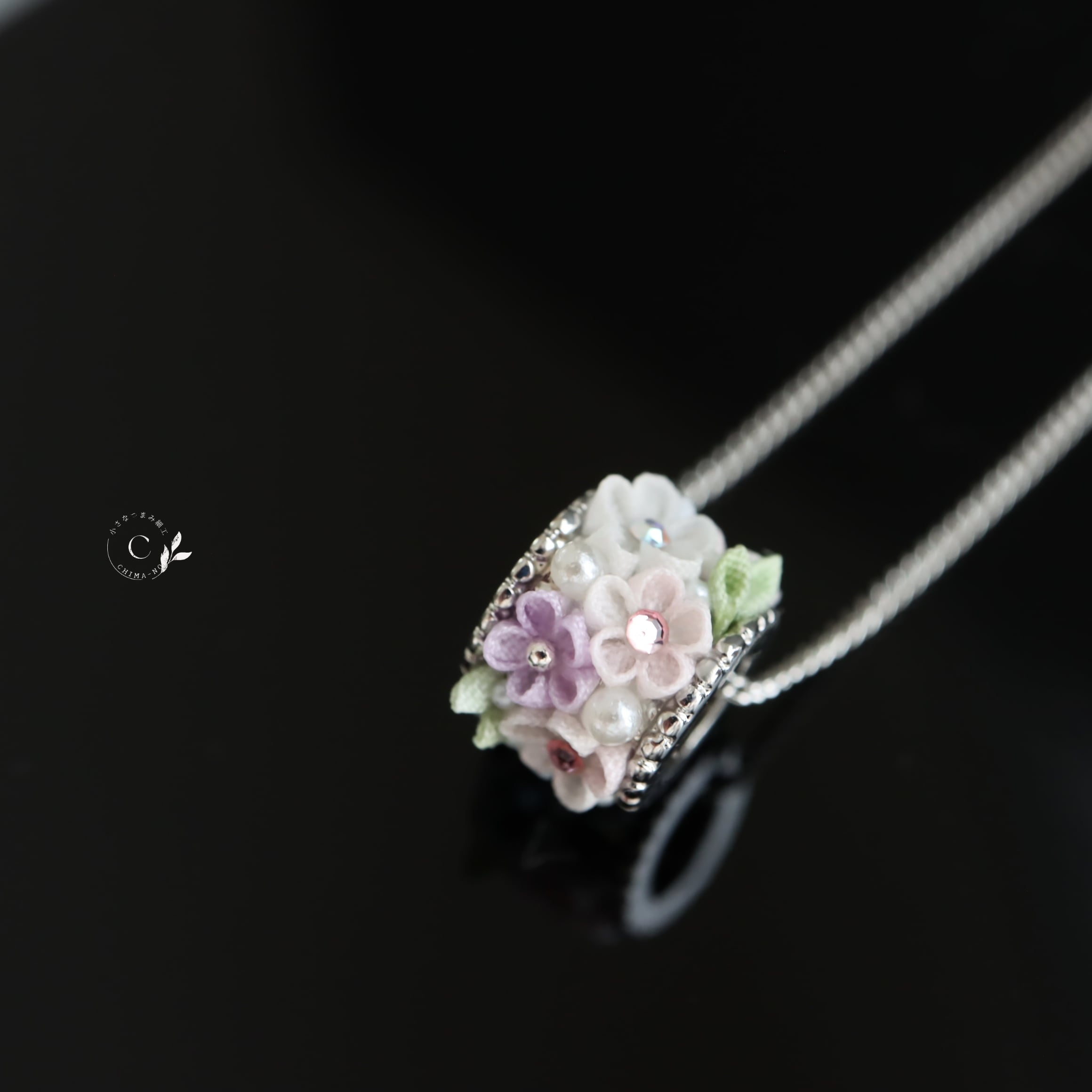1周ぐるっと様々な小花や葉、ストーンにパール。