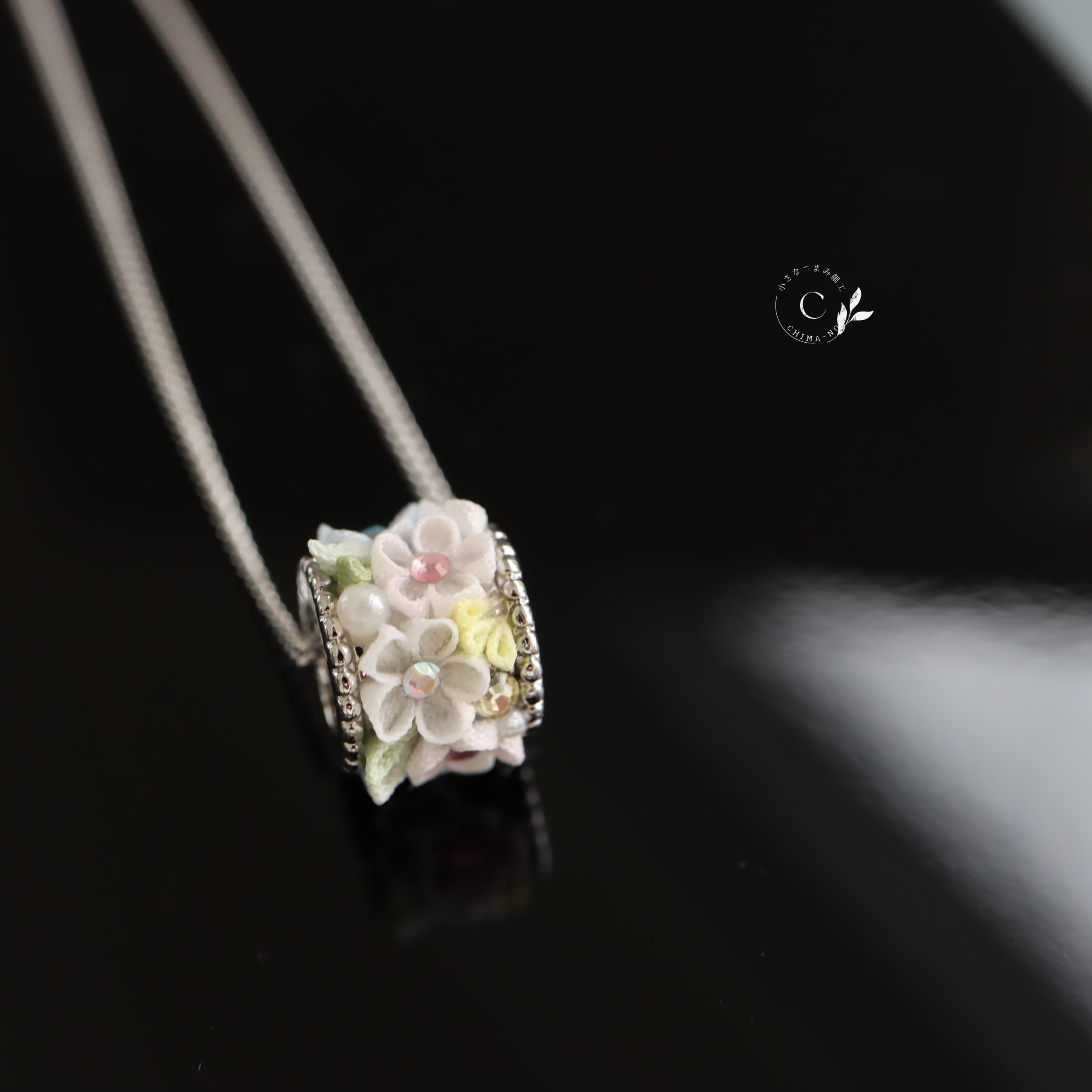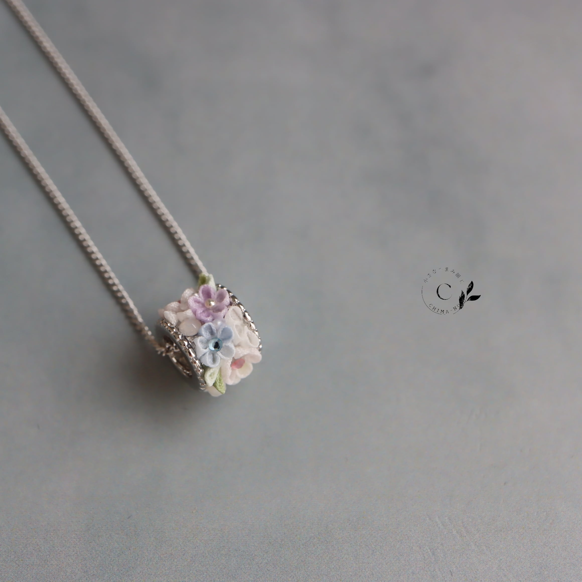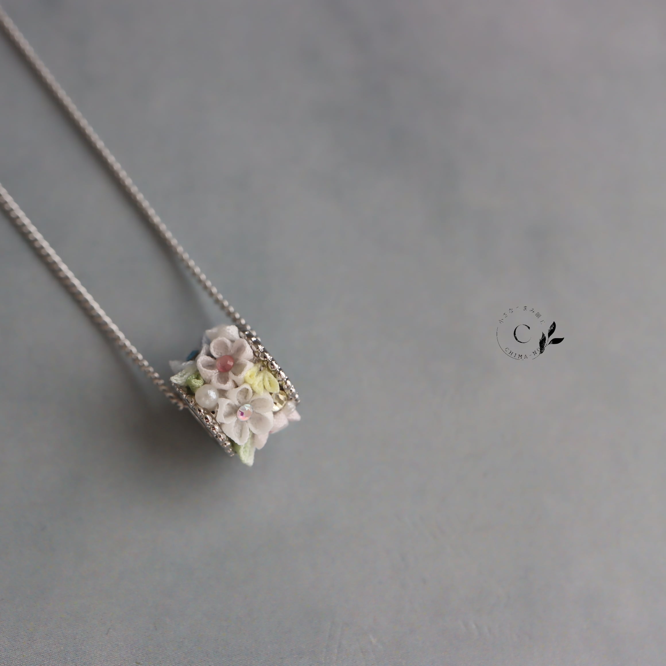 1周ぐるっと様々な小花や葉、ストーンにパール。