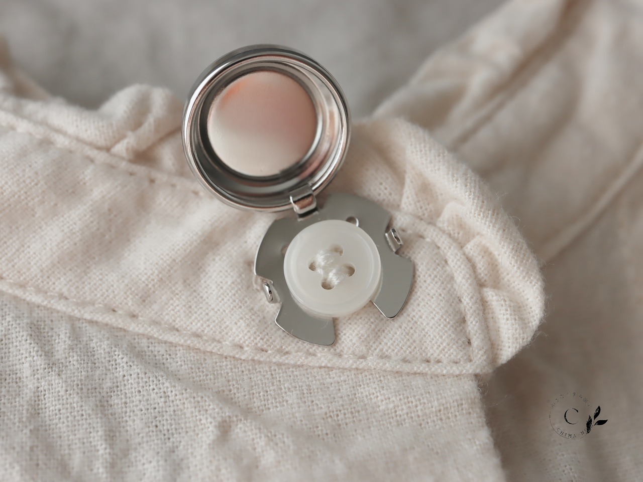 対応サイズはボタンの直径12mm・厚み3mmまで。ワイシャツの前身頃のボタンなど、小さいボタンに対応可能です。