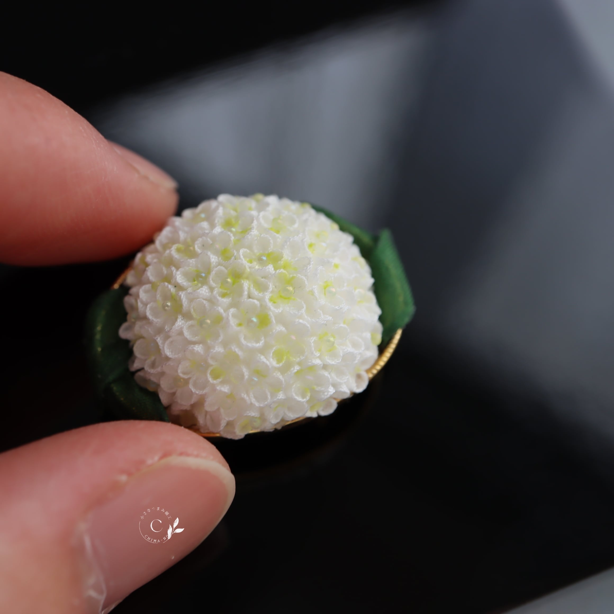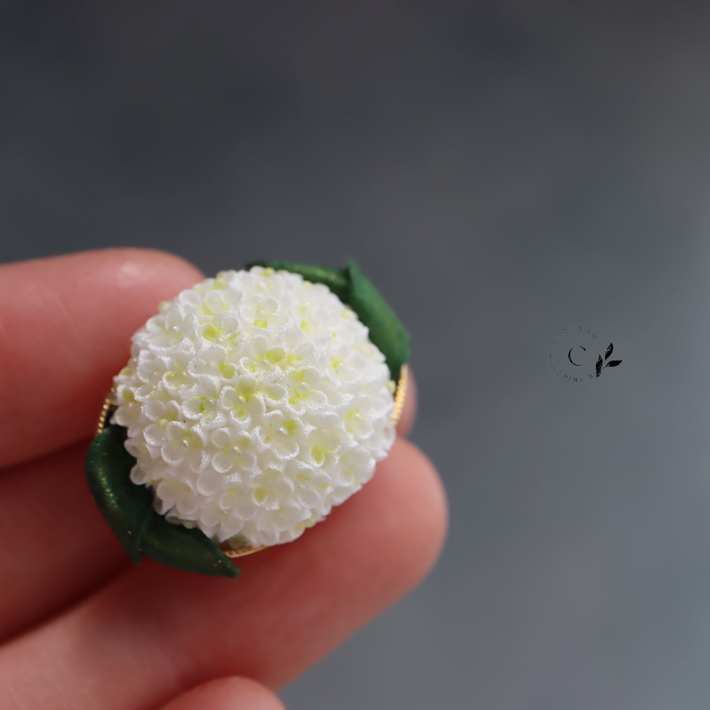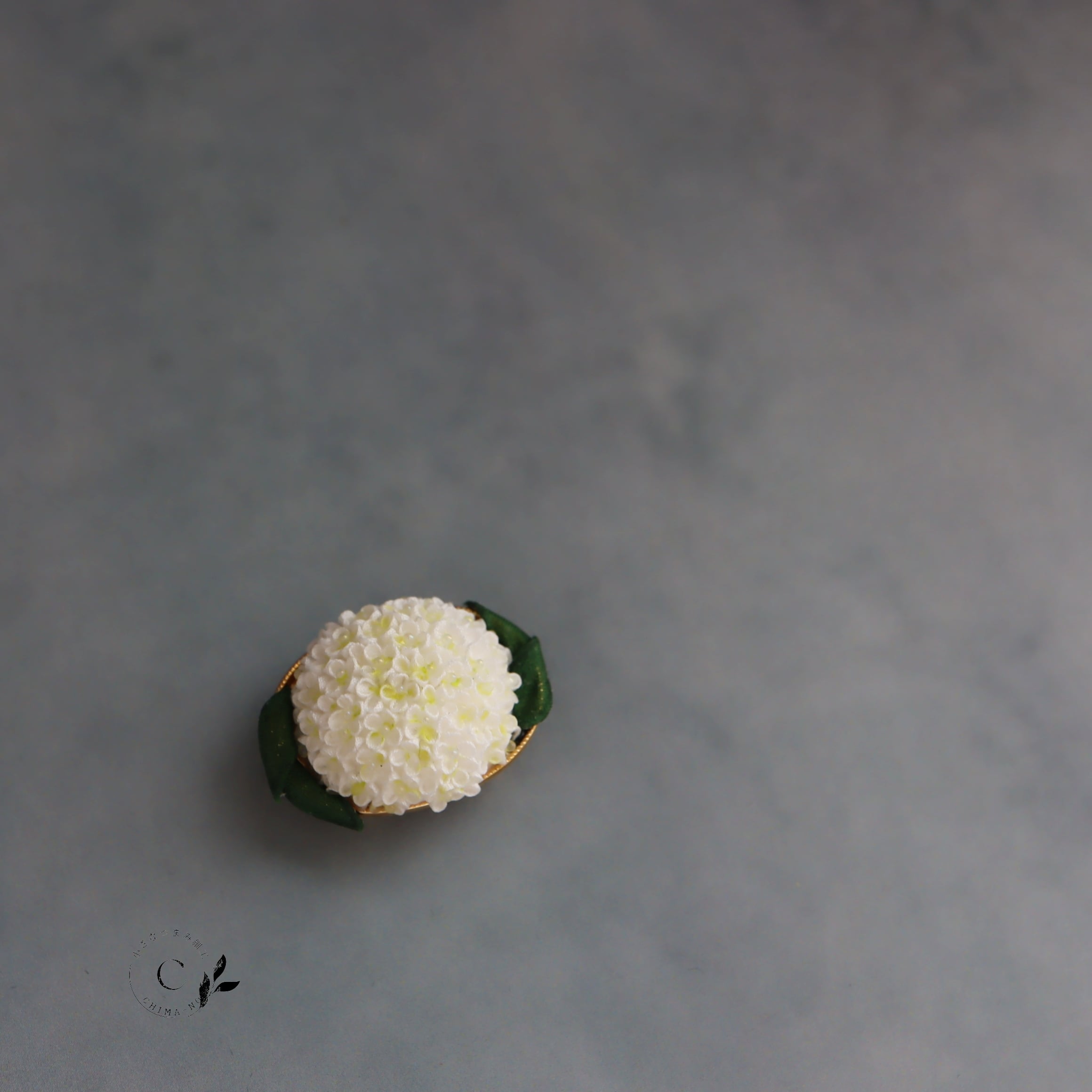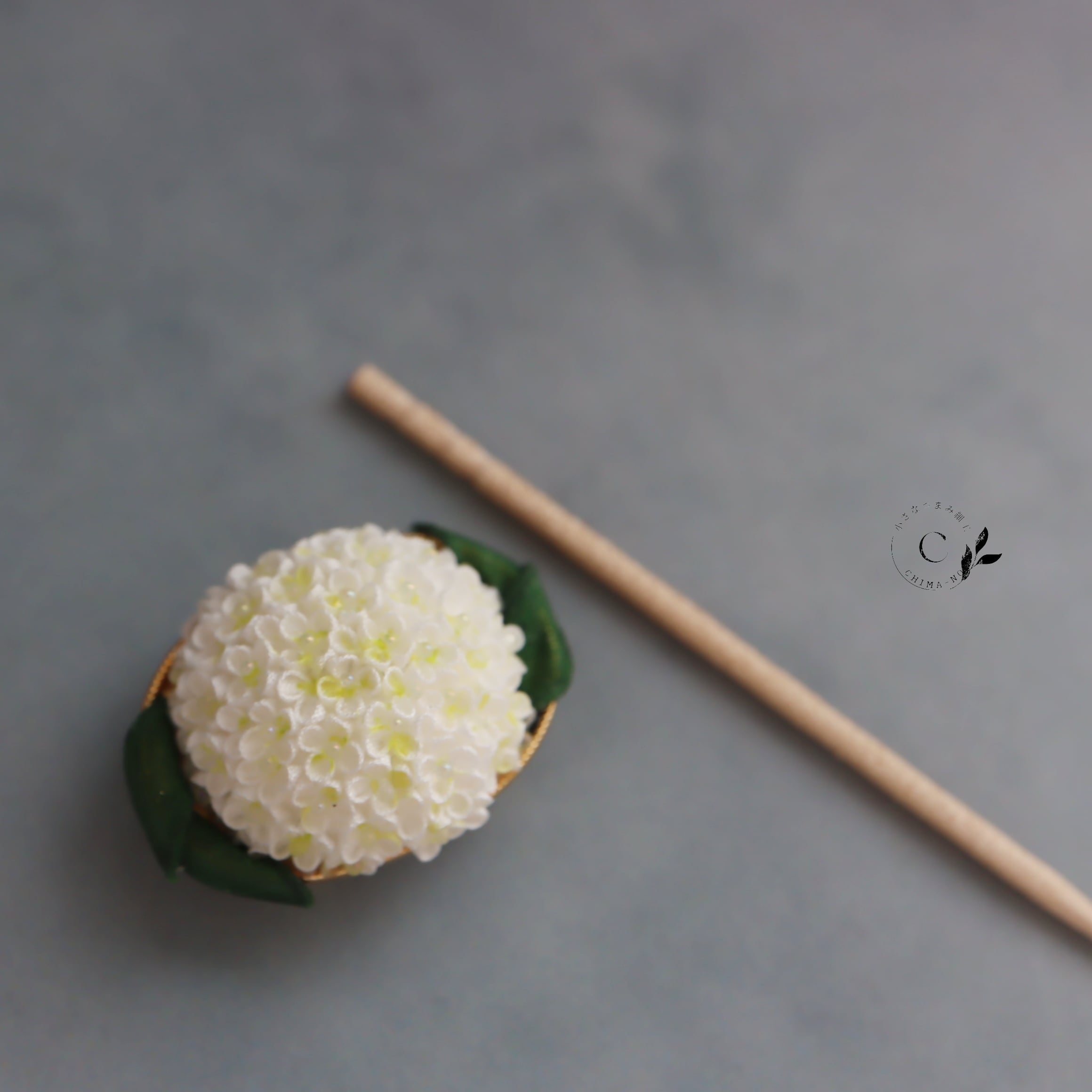 アナベルをモチーフに帯留めを作りました。