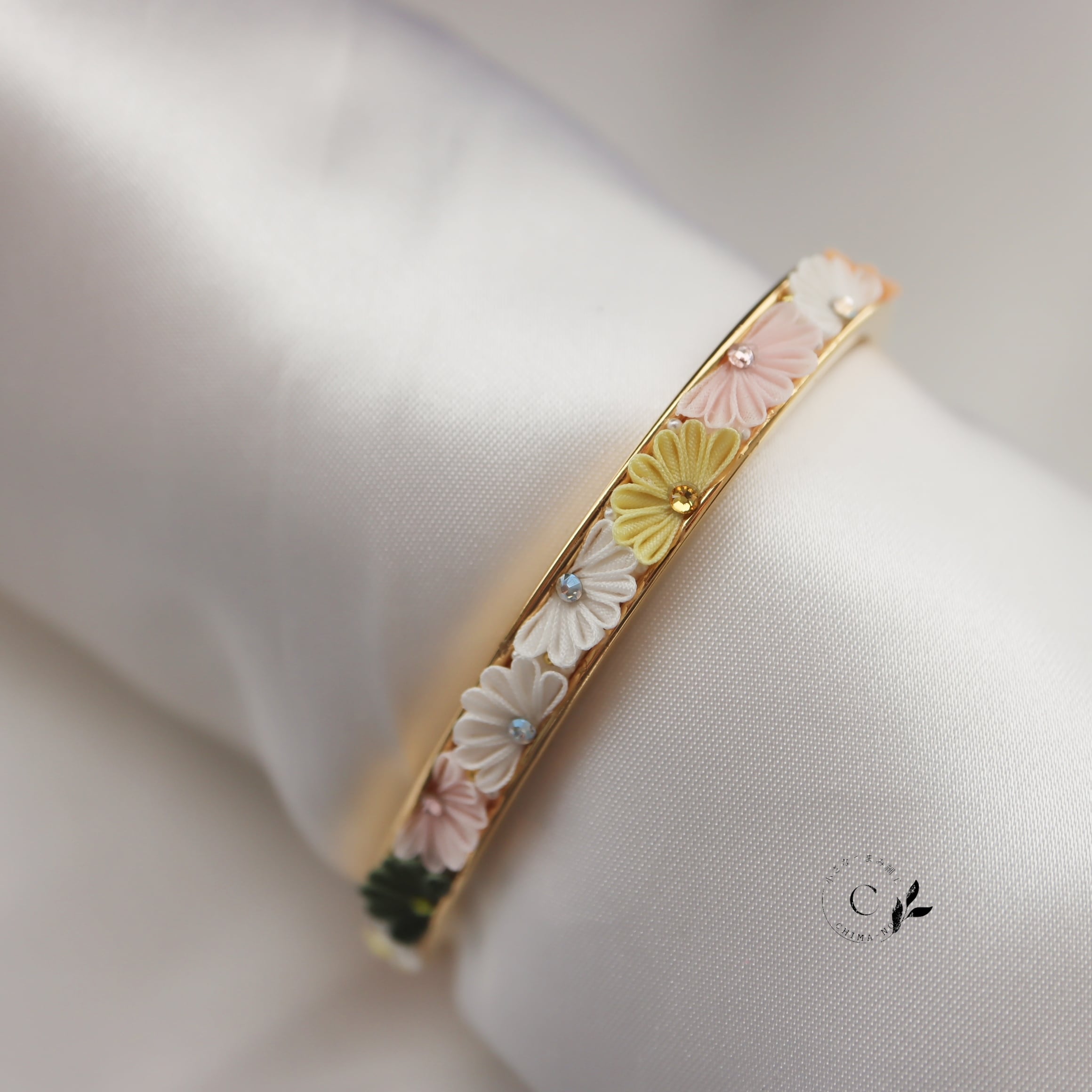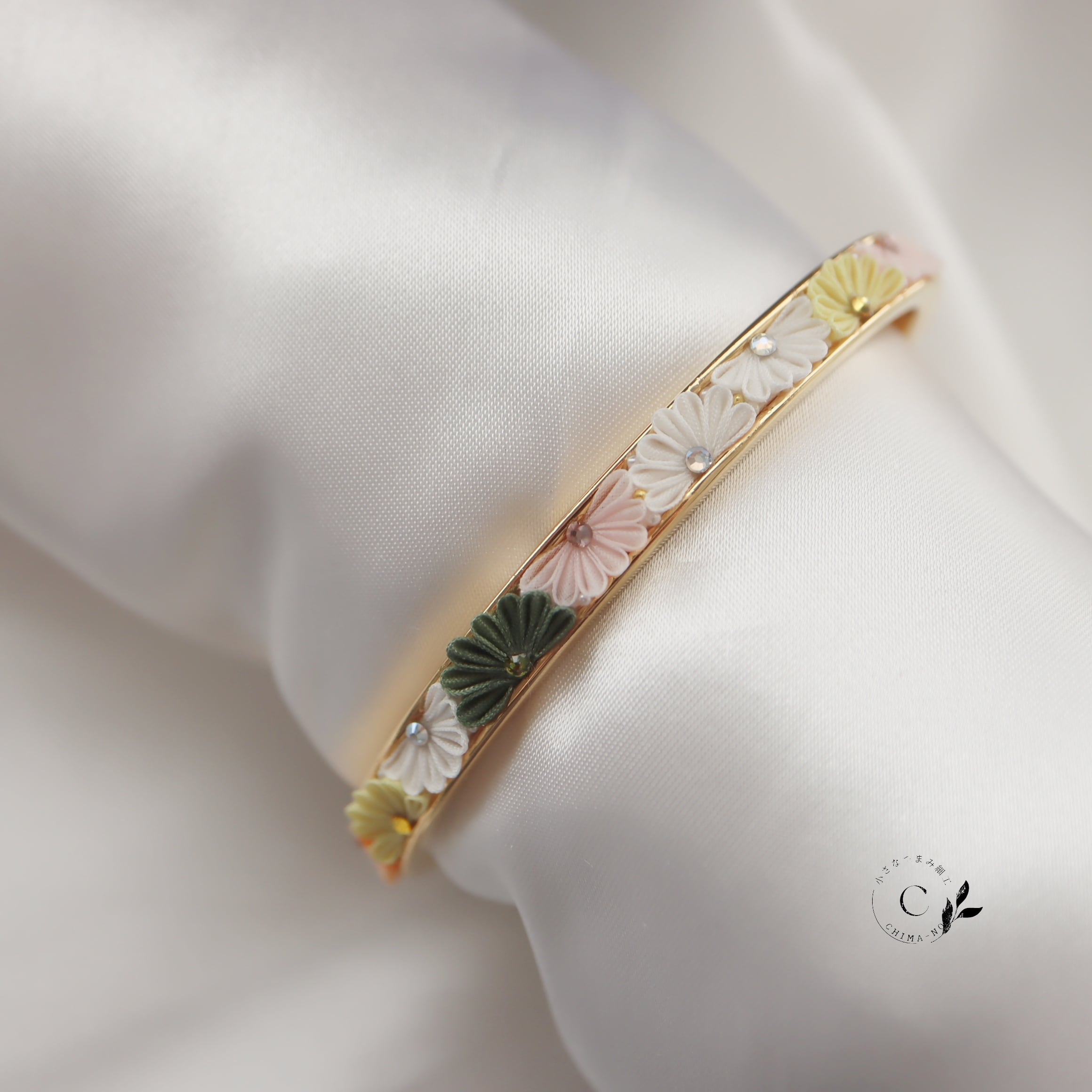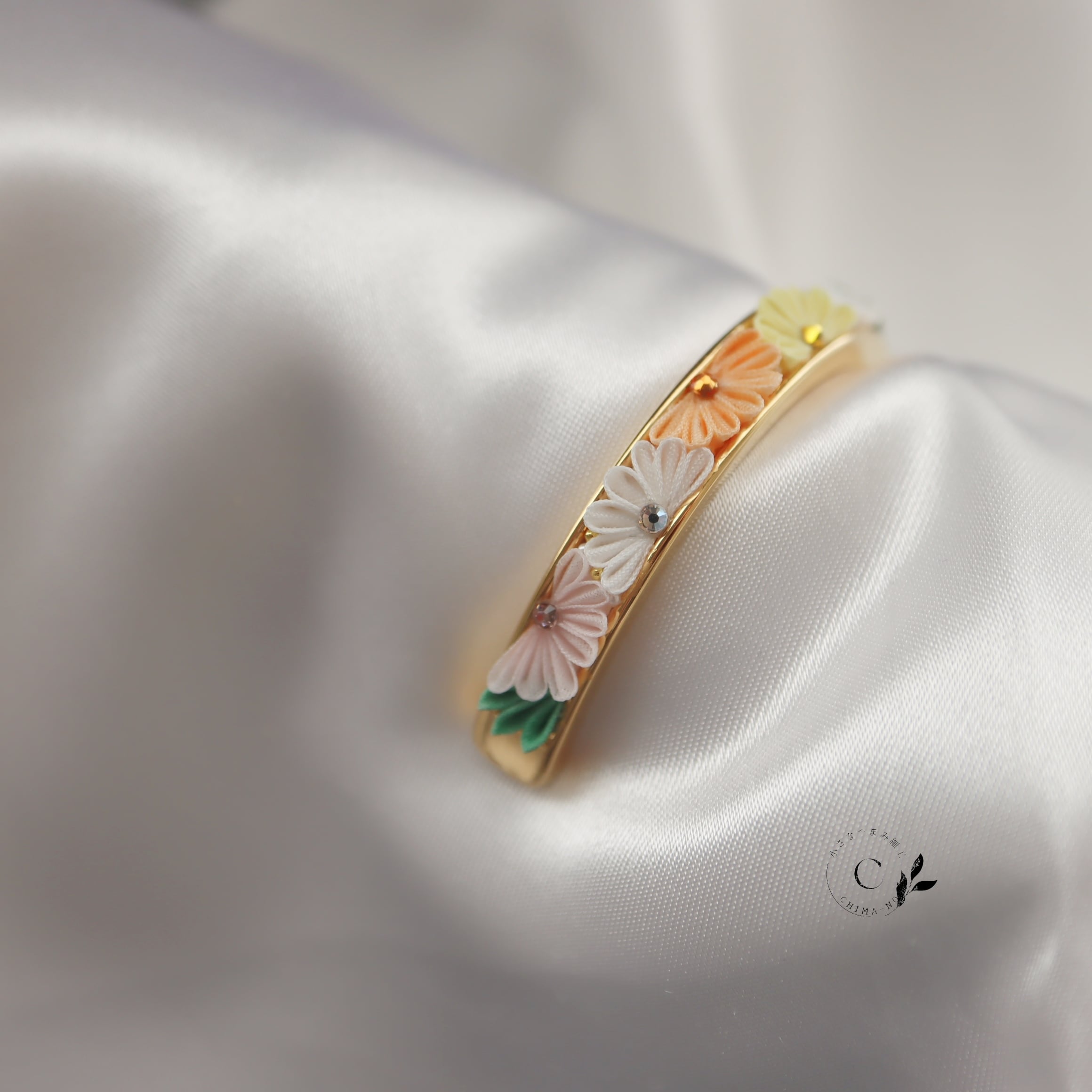 手元で咲くお花が見るたびに心をほころばせてくれることを想い作りました。
